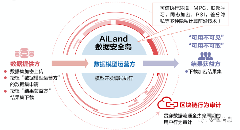 安恒信息AiLand数据安全岛从 “数据可用不可见,可用不可取” 的总体策略出发,利用区块链技术特性和数字证书,解决了学校和各相关业务单位的业务系统中核心实体数据,例如,教师、学生、科研项目等相关数据的确权和共享使用中的安全问题。另外,本系统提供数据模型调试和模型执行环境功能,保证数据管理员完成数据模型的安全开发。AiLand数据安全岛可建立大数据可信执行环境BDTee+密文计算+数据全生命周期安全环境,通过密文查询手段防止工作人员查询敏感数据,保障学生数据不被泄漏,保护学生隐私。同时, 借助隐私计算技术,提升了区域教育大数据的含金量,实现隐私保护下的高质量数据协作,事中利用上链数据实现对数据流通可控,事后如果出现问题,可溯源监管和审计。
