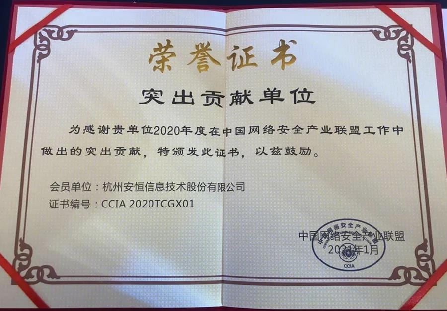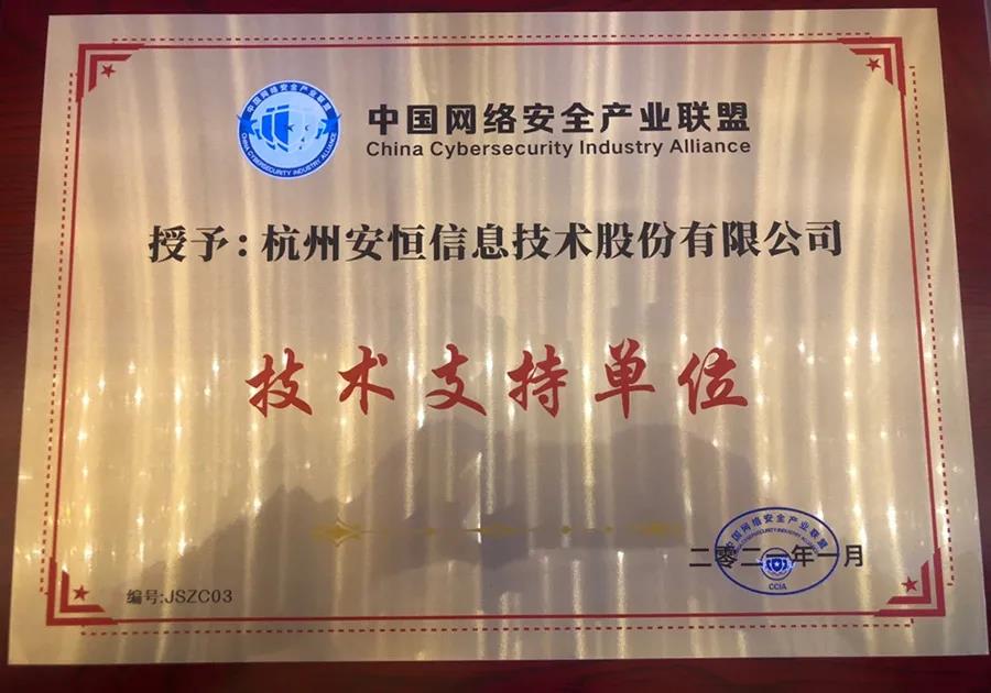 安恒信息荣获中国网络安全产业联盟“突出贡献单位”和“技术支持单位”称号_2021_安恒动态_关于人生就是搏z6尊龙_安恒信息
