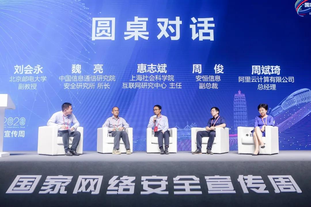 作为本次论坛精彩亮点之一,圆桌对话由北京邮电大学副教授刘会永主持,上海社会科学院互联网研究中心主任惠志斌、中国信息通信研究院安全研究所所长魏亮、安恒信息副总裁周俊、阿里云计算有限公司总经理周斌琦联袂登台,针对智慧城市数据资源规划,数字城市治理,信息共享交换的安全等话题进行对话。