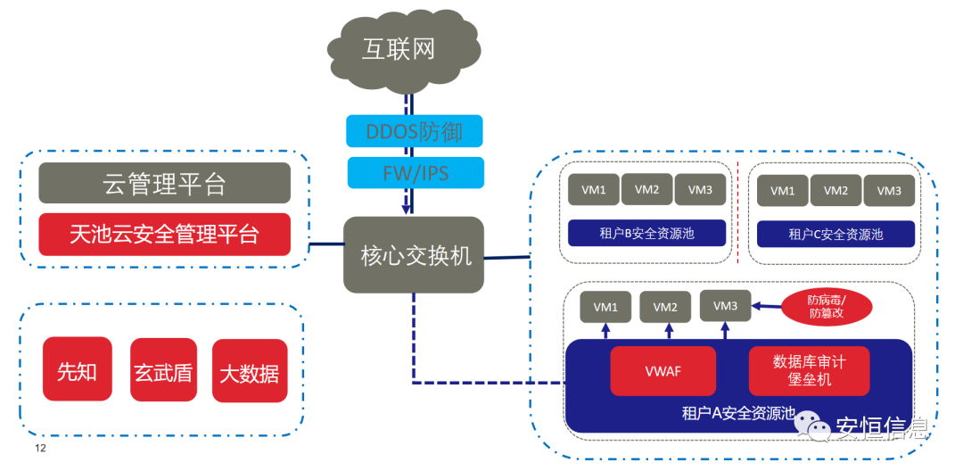 安恒信息是业内引领云安全发展的云安全综合能力领先安全企业,天池云安全管理平台自2013年发展至今,已有超过200份云安全案例落地,针对运营商、金融、企业、教育、政府等行业的所有云上用户提供灵活的解决方案。
