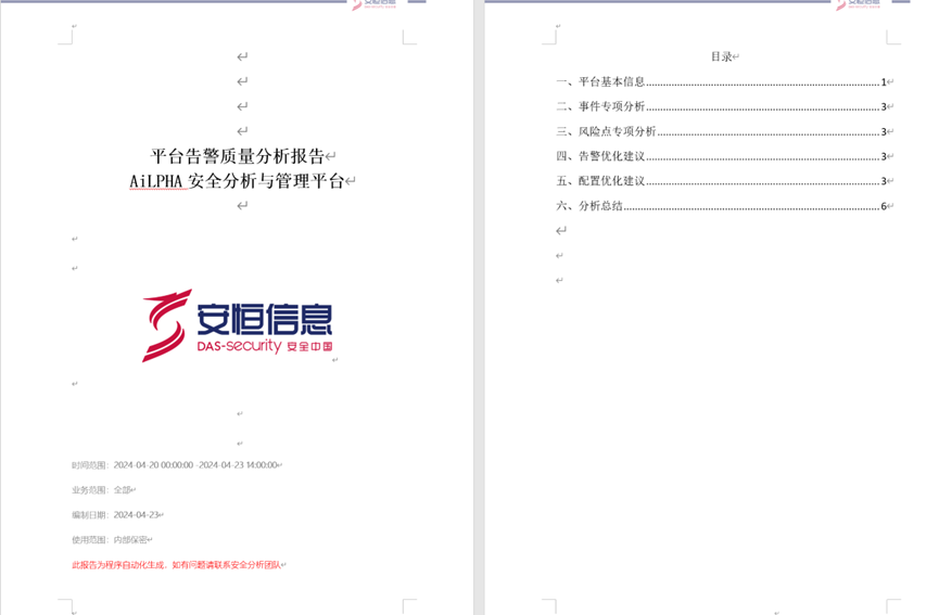 安恒信息通过部署5节点的AiLPHA安全分析与管理平台集群,实现集团互联网出口、数据中心、核心工厂的全流量监测,及关键安全设备日志对接;通过部署AiLPHA 安全编排与协同响应管理平台实现流程自动化/半自动化,提升运营效率。