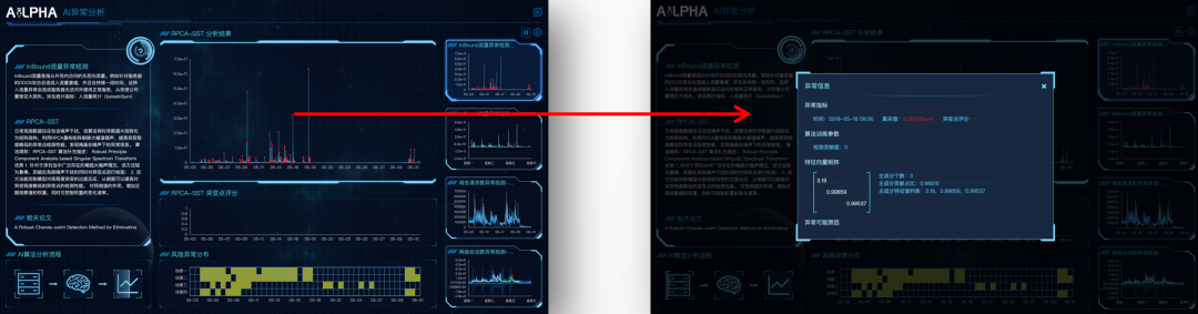 利用RPCA-SST算法矩阵重构剔除大幅值噪声,通过重点监控服务器和终端的DNS请求行为、性能和外传流量,检测木马持续性回连远控地址和数据泄露的机器行为,标注异常点,提取相关日志及访问关系,为运营人员提供一步到位的溯源取证能力。