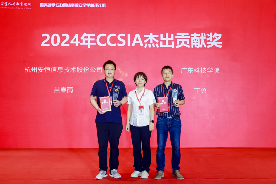 此次荣获2024年CCSIA杰出贡献奖的苗春雨博士,是中国网络空间新兴技术安全创新论坛(新安盟)理事,曾获新安盟推荐荣获2021中国产学研合作促进会“产学研工匠精神奖”;中国网络空间安全人才教育联盟专委、人才标准组副组长;全国信息技术标准化技术委员会教育技术分技术委员会专家;杭州第19届亚运会火炬手,杭州亚运会网络安全保障核心专家。